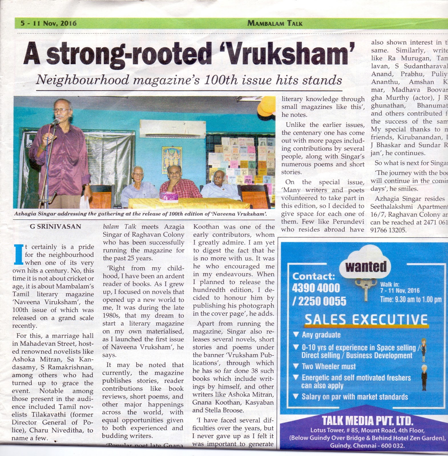 இதை அலுவலத்தில் உள்ள மேலதிகாரிகள் படித்துவிட்டு என் மீது நடவடிக்கை எடுப்பார்கள் என்று துளிக்கூட பயமில்லை எனக்கு. காரணம். விருட்சம் என்ற பத்திரிகையை யாரும் தொடக்கூட மாட்டார்கள். மேலதிகாரியைத் திட்டி பத்திரிகையை அனுப்பினாலும் அவர் படிக்கக் கூட மாட்டார். தொடக்கூட மாட்டார். என் கிளை அலுவலகத்திலேயே தமிழில்தான் பேசுவார்கள். தமிழ் புத்தகம், தமிழ் பத்திரிகை படிக்கக்கூட மாட்டார்கள். என் தொகுப்பில் சேர்க்க மறந்த அந்தக் கவிதையை இங்கு தர விரும்புகிறேன்.